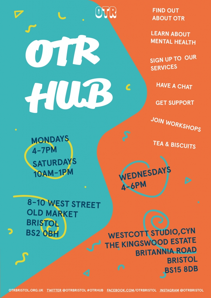 OTR’s Hubs provide a space to drop-in and chat about all things wellbeing – and also to navigate the groups and support on offer not only from OTR, but from other places around Bristol and South Glos too.