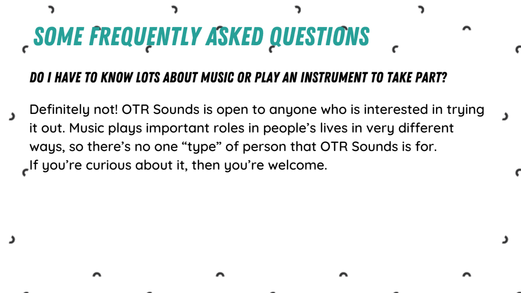 Please note that the OTR Sounds sessions will continue online. You can sign up with the button above.