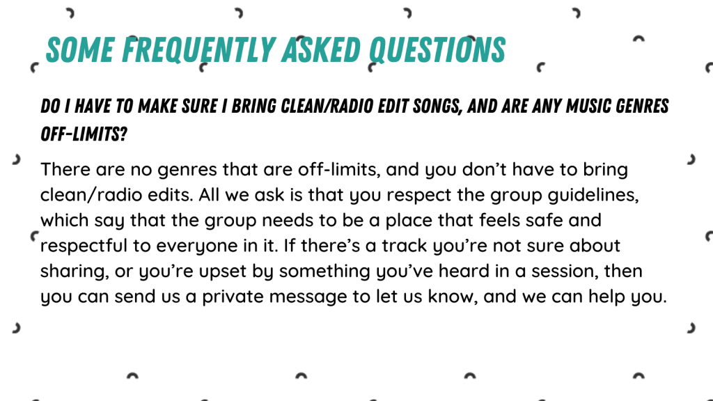 Music can play a huge part in our mental wellbeing, different cultural identities, and our own life stories, so these topics are always welcome, along with anything else you’d like to talk about!