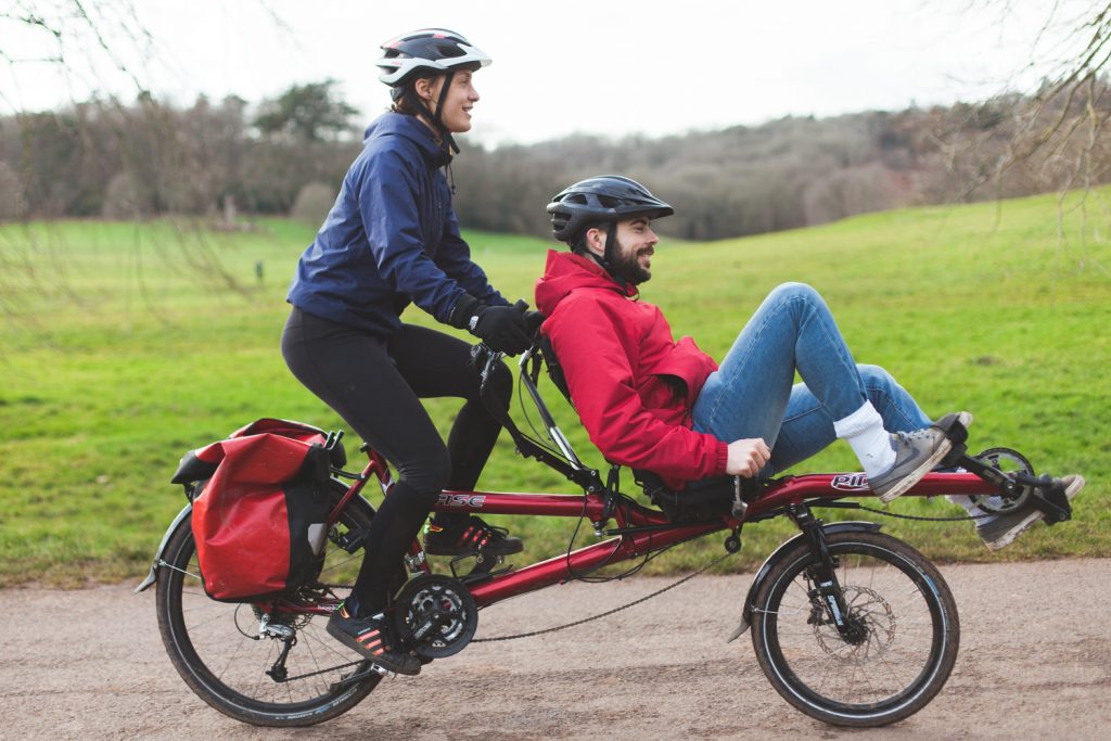 Cycling with RORO sessions will take place on an adaptive tandem bike with a ride leader, so you can do as much or as little pedalling as you want. The ride leader also controls the brakes and gears, and has their own pedals. You can choose either one-on-one or in a pair with another young person on a separate tandem.